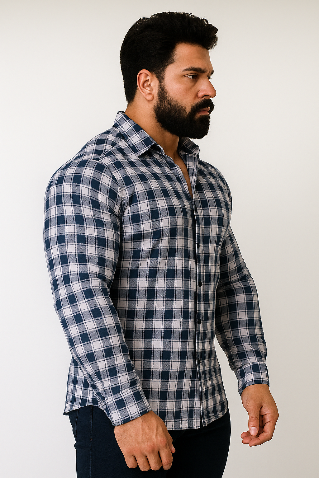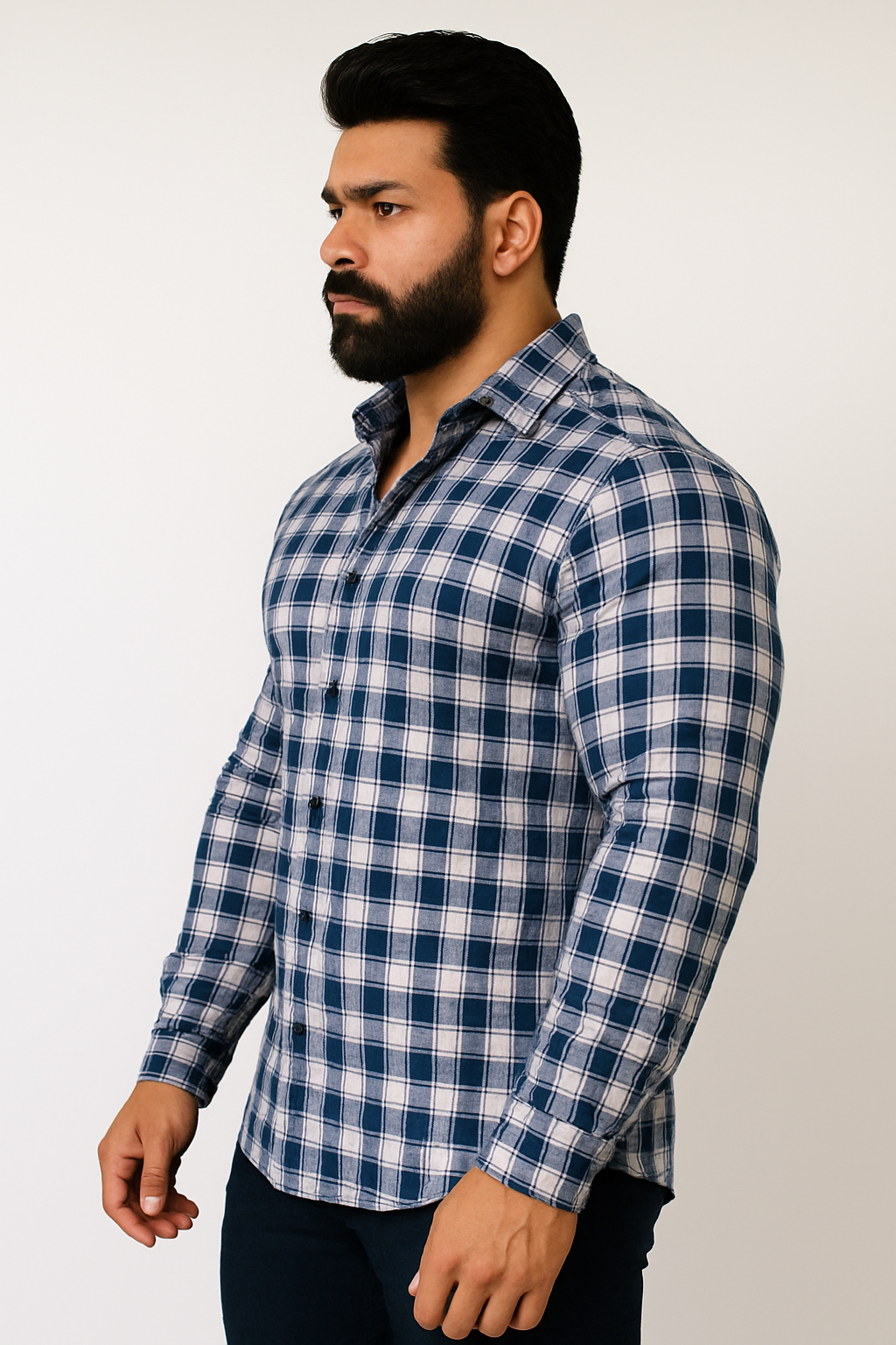 Introducing our Blue Check Shirt, a stylish addition to your wardrobe. Crafted with care, this shirt features a vibrant blue hue that exudes confidence and sophistication. Its soft fabric ensures comfort, while the classic design offers versatility for various occasions. Elevate your style with our Blue Check Shirt, a perfect choice for those seeking a touch of elegance and modernity.